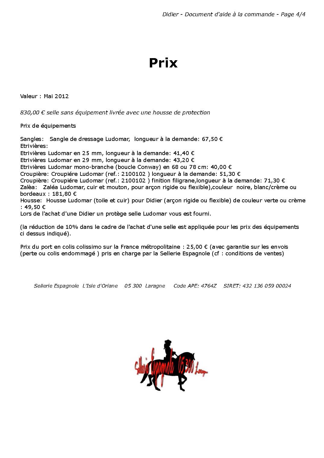 Valeur des prix ci-dessus indiqués Mai 2012