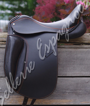 DIDIER Type "Relvas" mais avec arçon très profond,spécial dressage,(siège un peu plus que la Lud) , taquets avant reculés pour donner une descente de jambe bien verticale. Mono-quartier. Arçon flexible.Nombreuses options. |