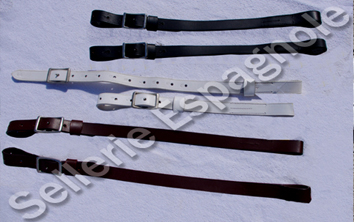 ETRIVIERES MONO-BRANCHE tout CUIR, sur mesure , Prévues pour selles à couteaux espagnols fermés (a rouleaux) Fermeture avec vis plate, existent en noir , marron foncé, tostado, noisette, blanc : € En option boucle portugaise dorée ou argent + 8€ |