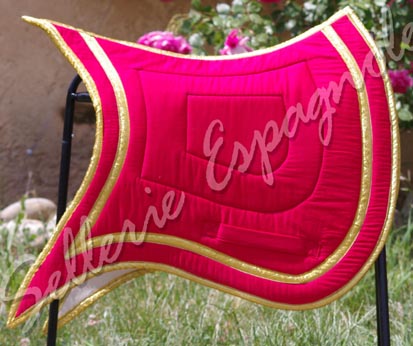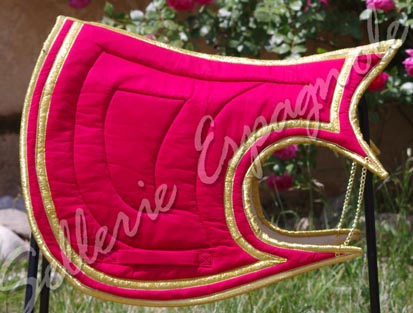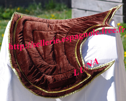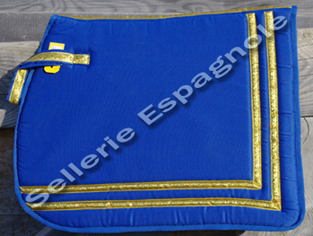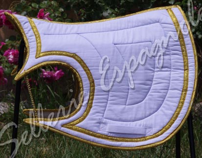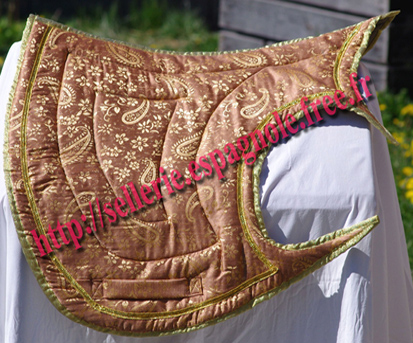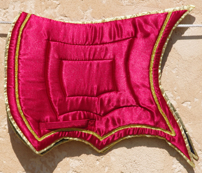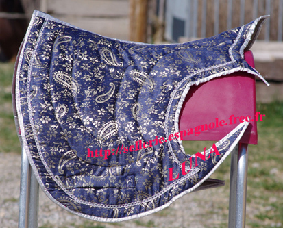Fin de Stock: TAPIS IBERIQUES et BAROQUES série limitée (chaque tapis présenté existe en 1, 2 ou 3 exemplaires ) Formes de tapis (modèles déposés) étudiées pour pouvoir être utilisées avec les selles de dressage habituelle et les selles espagnoles (Ronda, Alta, Venus etc..), ces formes se déclinent en différents coloris et tissus - velours, toile , imprimé.... - le desous du tapis est en gabardine coton gris. |