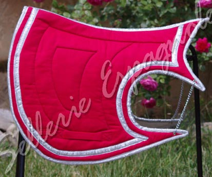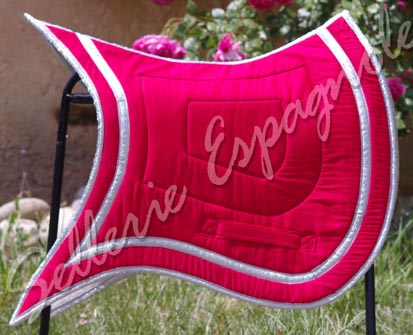 NOUVELLE COLLECTION Tapis étudiées pour pouvoir être utilisées avec les selles de dressage habituelles même avec quartiers rallongés et les selles espagnoles (Ronda, Alta, Venus etc..), ces formes se déclinent en différents coloris et tissus - nubuck synthétique, toile coton - le desous du tapis en contact avec le cheval est en toile coton naturelle. Pour voir ces tapis sur un cheval avec différentes selles , cliquez ICI |