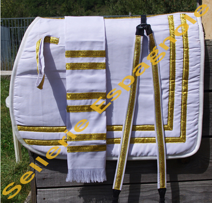 ENSEMBLE ALTA ESCUELA complet Tapis Haute ecole , dimensions : hauteur de profil :56cm, longueur 62cm, doublé ,Interieur toile coton + Collier tout cuir doublé tissus + Manta Estribera € + port |